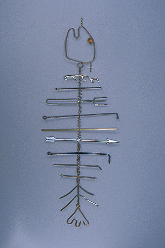 (copper wire, marble, pokers, fork, rods, cross, hex nuts)