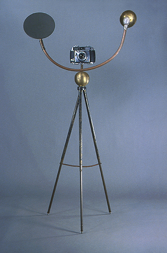 (camera, tripod, brass ball. copper pipe, mirror, flashbulb)